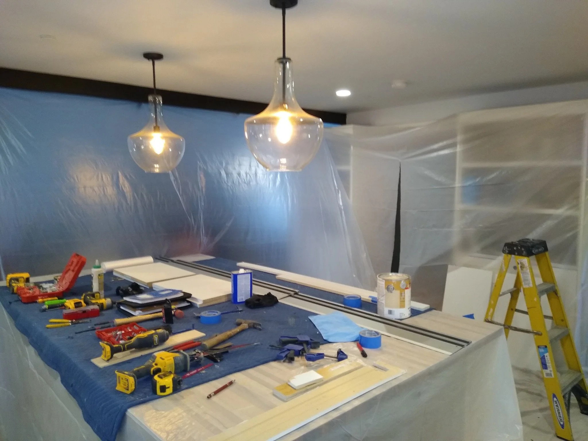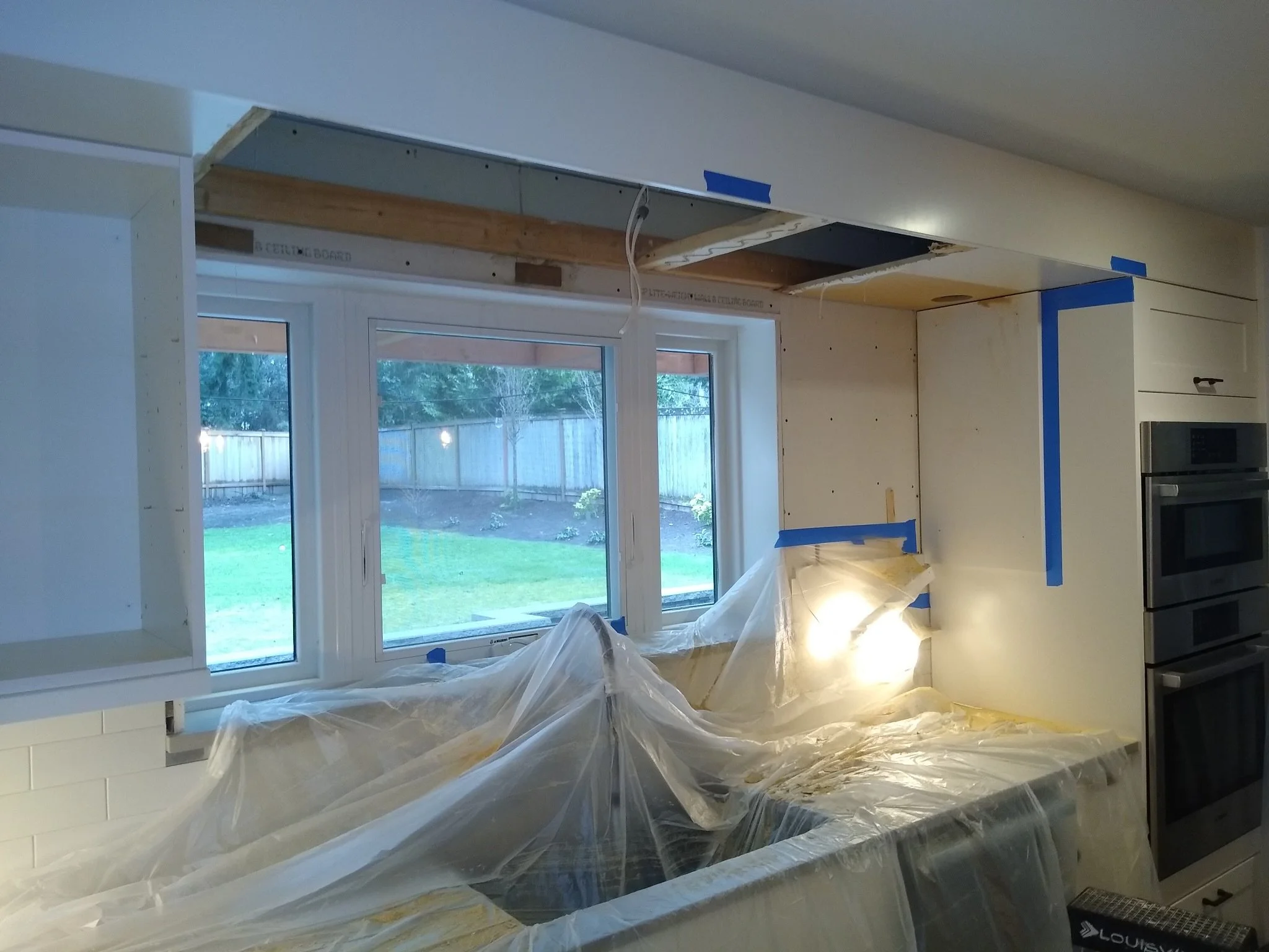 Our team is busy repairing a beautiful custom kitchen that was damaged from a water leak from the floor above. The repair is a complex one involving the removal of high-end painted cabinetry, the replacement of damaged sections and finally painting to match existing finishes. It’s a step-by-step process that requires a high level of skill and attention to detail - as well as protection to the rest of the house.